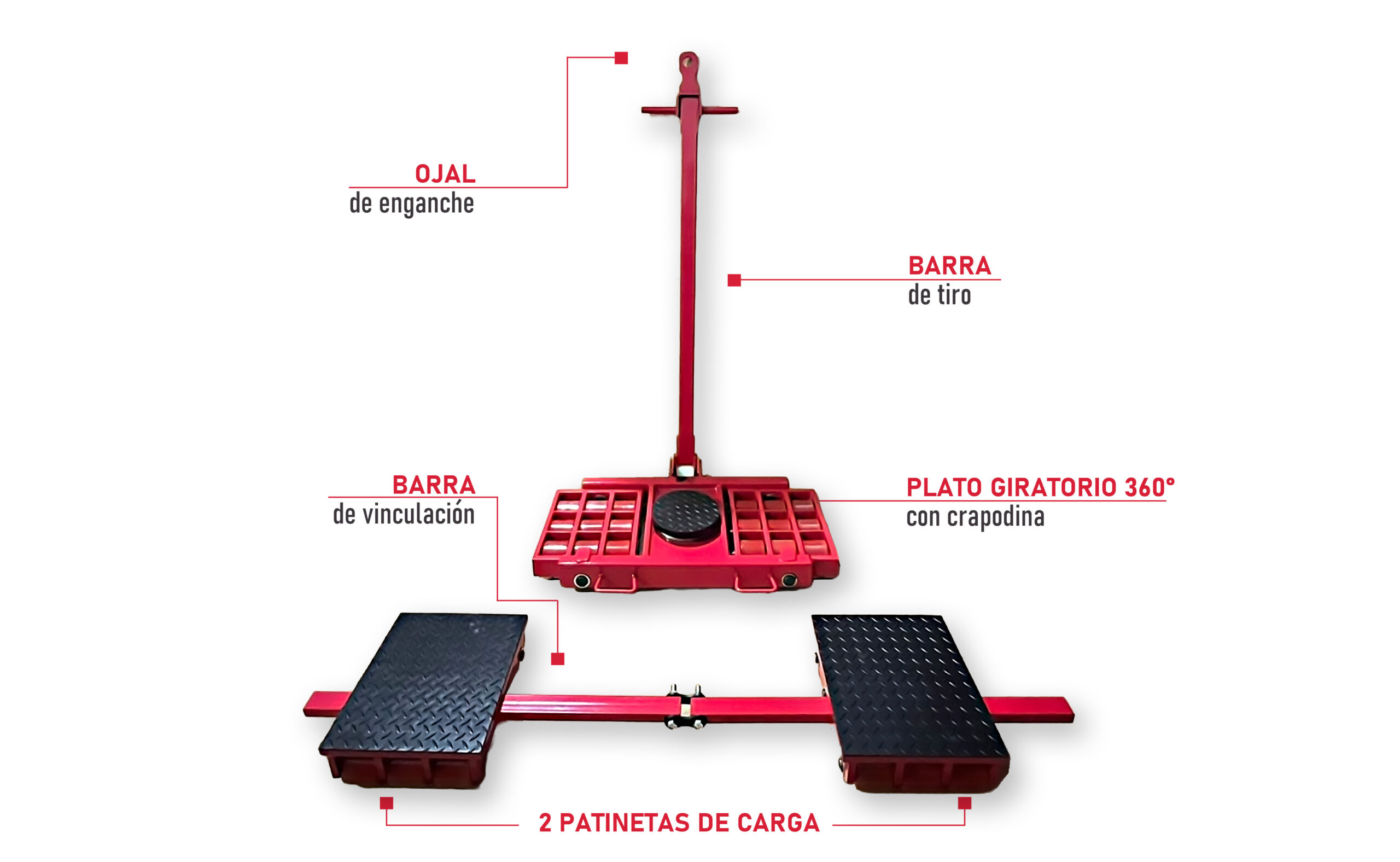 - Los múltiples puntos de apoyo producen una mejor distribución de la carga y un desplazamiento más fluido de un lugar a otro. Esto puede ser especialmente valioso para mover cargas frágiles, como equipos de laboratorio calibrados que no deben ser golpeados ni empujados durante el tránsito.